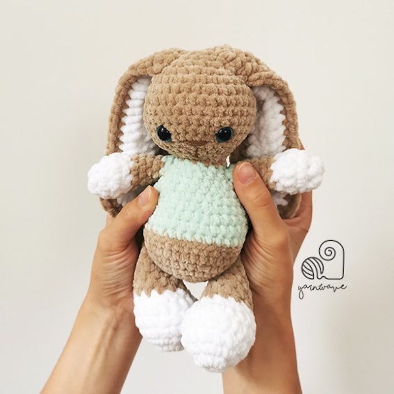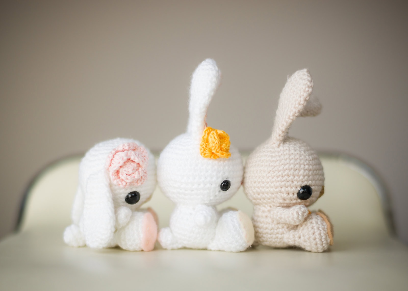 This spring bunnies pattern by Stephanie Jessica Lau (All about Ami) is super cute. Get the crochet plushies pattern for free on her website by clicking the button below or to buy on Etsy as ad-free pdf.