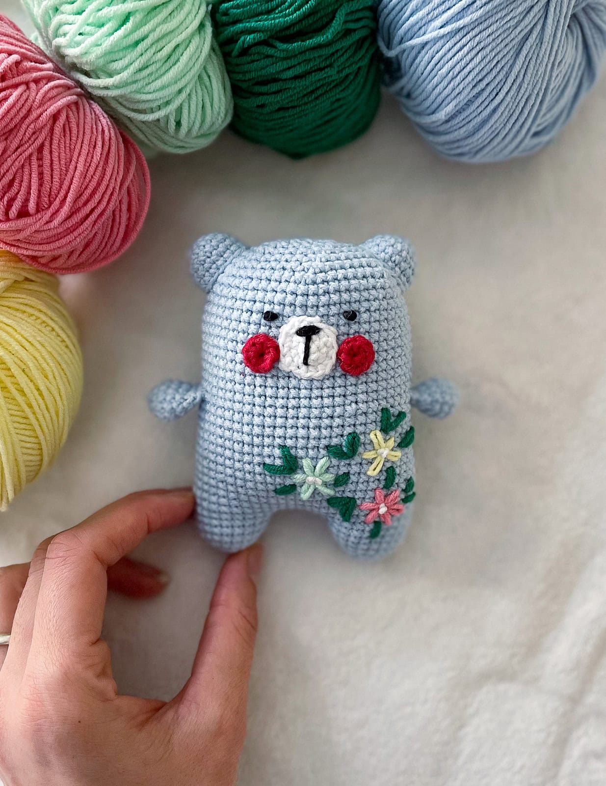 I really like the addition of flower embroidery to this cute polar bear pattern by Pavlina Svarcova, available for free on Ravelry (click button below).