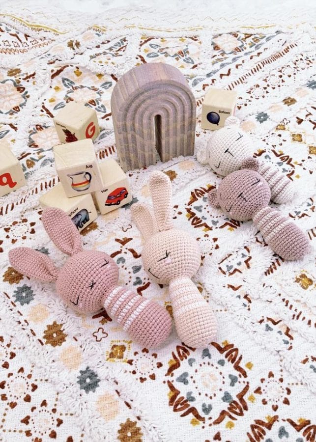 Another gem from an independent designer, this free pattern is available for personal use and makes a thoughtful, handmade alternative to plastic toys. Check out Theordore & Rose patterns on Etsy too – so much beautiful crochet inspiration! There’s a baby rattles bundle pattern to buy on Etsy too.