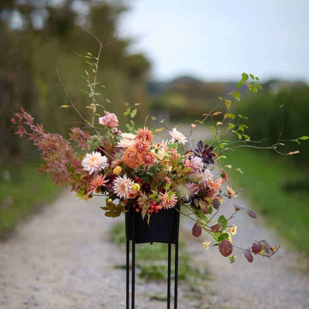 I made it using the beautiful ceramic bowl by Marches Pottery in Ludlow that Tammy from Wild Bunch Flowers gave me last year. (I spent a blissful day with her, learning to arrange flowers foam-free, using chicken wire and a florist’s frog. You can read the full post here).
