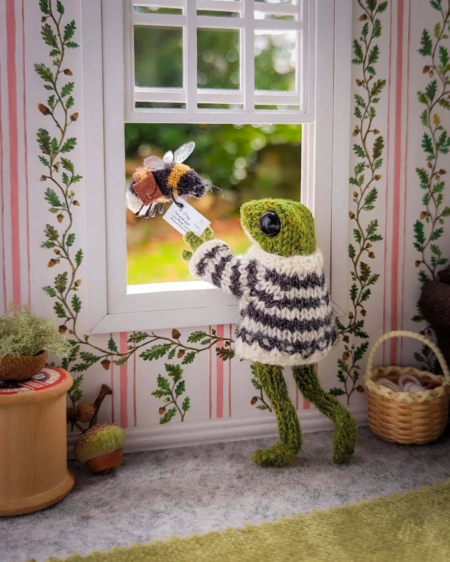 I had to share this adorable Insta account with you – solely devoted to sharing heart-melting photos of Froggy. Here are three of Elliot’s photos to give you a taste of the joy in store for you there. Connect with @heknitt on Insta here Buy finished knitted creations in his online shop here and get his adorable patterns for Froggy’s clothes and accessories on Etsy here.