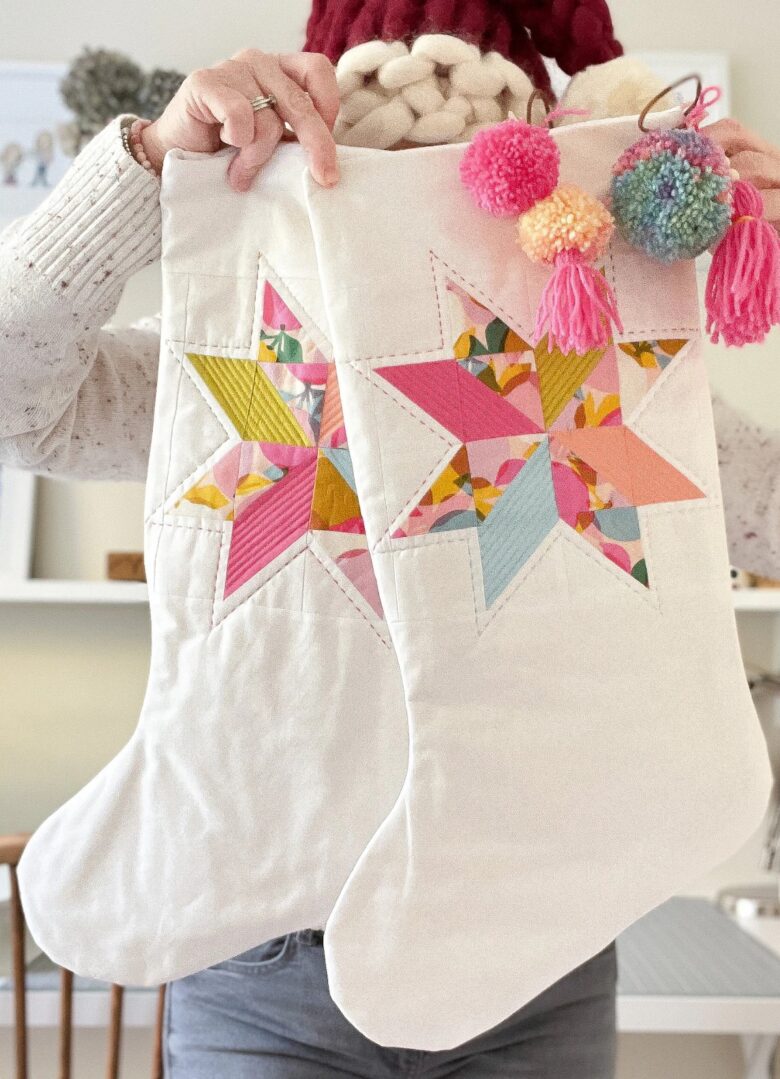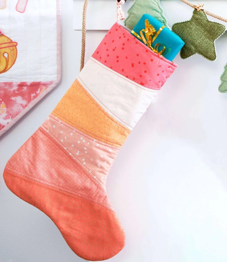 This scandi inspired pattern is by Little Sister Sewing and available to buy as instant download PDF pattern on Etsy which you can then print out to create a paper pattern for the stocking pattern pieces. You can choose to make it in two different sizes and in four different designs. You can also use your own quilt blocks if you’d prefer.