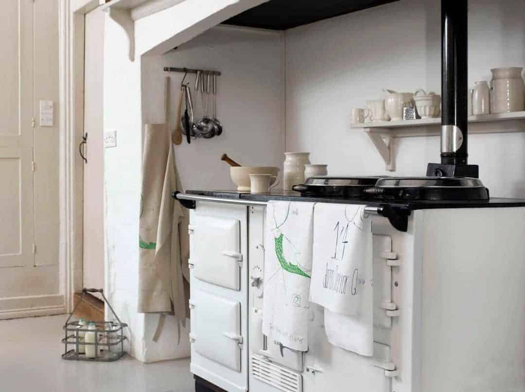 love this modern rustic white aga and white country kitchen. Click through for inspiring white on white interiors ideas you'll love